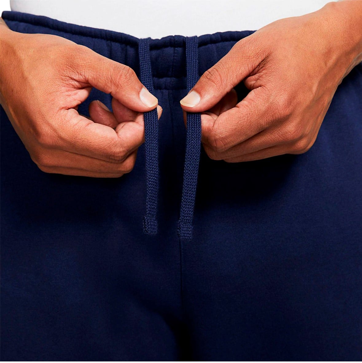 Современные удобные брюки-джоггеры от компании Nike предназначены для занятий спортом и активным отдыхом, но также подходят для повседневного ношения. Данная модель брюк изготовлена из мягкого флиса с начесом на изнаночной стороне, который приятен к телу, хорошо защищает от холода, а также регулирует теплообмен и своевременно отводит влагу с кожи, за счет чего походит даже для интенсивных тренировок. Мягкие брюки имеют стандартный крой, за счет которого обеспечивается комфортная посадка, а эластичный пояс с регулируемым шнурком позволяет подогнать размер под особенности фигуры спортсмена. Манжеты джоггеров выполнены из рубчатой ткани, которая не скрывает кроссовки. Стильные брюки-джоггеры выполнены в полночно-синем цвете создают законченный образ в повседневном уличном стиле. Особенности и преимущества: